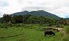 Animals (Goats and water buffalo) on the rice fields; behind is the Mount Arayat in Pampanga